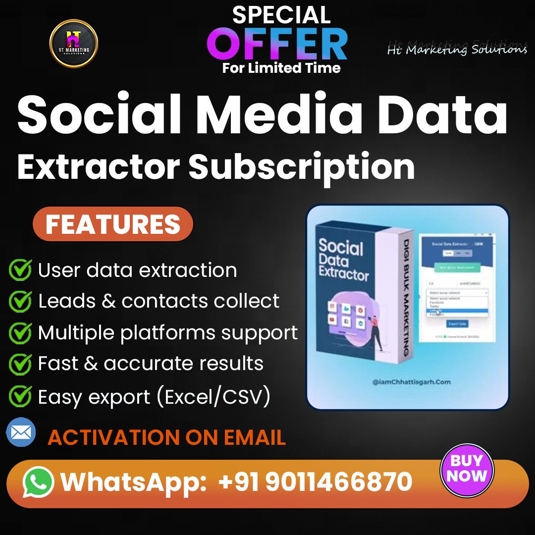 The Social Media Data Extractor is a powerful and advanced tool designed to help marketers, agencies, and businesses gather targeted leads and accurate data from multiple social media platforms instantly. Whether you’re looking to build outreach lists, collect profile information, or analyze audience behavior, this tool gives you fast, reliable, and highly relevant data in just a few clicks.